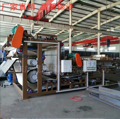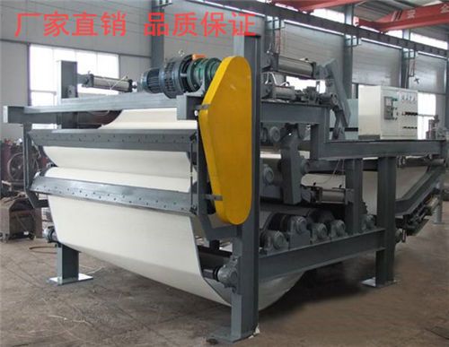 带式压滤机包括不锈钢机架、重力脱水段、压榨段、泥耙、驱动装置、滤带清洗装置,滤带张紧装置、滤带纠偏系统、滤液收集盘及排水盘,内部电线及管道等,全部使用耐磨耐腐蚀材料,确保设备长时间稳定运行。