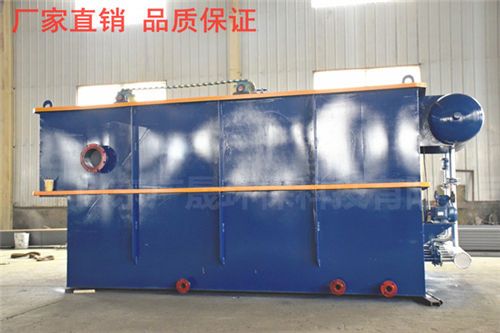 清洗废水处理设备选用的溶气气浮机:通过溶气气浮机的加药系统进行加药絮凝,分离出一部分悬浮物,这部分悬浮物经过溶气气浮机的刮渣板刮入污泥池。溶气气浮机采用新型高效的溶气设备——微气泡发生器,代替传统的引