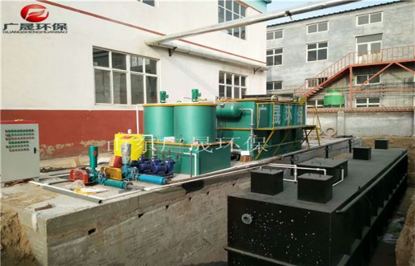 餐具消毒污水的特点是水量波动大、瞬时水量大,污水里含有大量的油脂、食物残渣、消毒剂、表面活性剂等。这种未经处理的污水进入自然水体后,使水中固体悬浮物、有机物和微生物含量升高,改变水体的物理、化学和生物群落组成,使水质变坏。故采用“溶气气浮机+一体化污水处理设备”处理工艺。