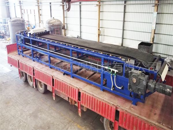 磷矿脱水真空过滤机以滤布为过滤介质,采用整体的环形橡胶带作为真空室。环形橡胶带由传动装置传动连续运行,滤布铺敷在胶带上与之同步运行,腔带与真空滑台接触(真空室与橡胶带间装有环形摩擦带并通入水形成水密封),料浆由布料器均匀地分布在滤布上。当真空室接通真空系统时,在橡胶带上形成真空抽滤区,滤液穿过滤布经橡胶带上的横沟槽汇总并由中心孔进八真空室,固体颗料被截留在滤布上形成滤饼,随着橡胶带的移动,已形成的滤饼受压力差影响逐步被脱干,后滤布与胶带分开,在卸料辊处将滤饼卸出,进入真空室的液体经气水分离器排出。卸除滤饼后滤布经清洗后获得回用,再经过一组支撑辊和纠偏装置重新进入过滤区,开始进入新一过滤周期。磷矿脱水真空过滤机实现了真正意义上的连续运行、连续过滤,物料从进料、脱水、卸渣到滤布清洗,可以不间断的连续进行。